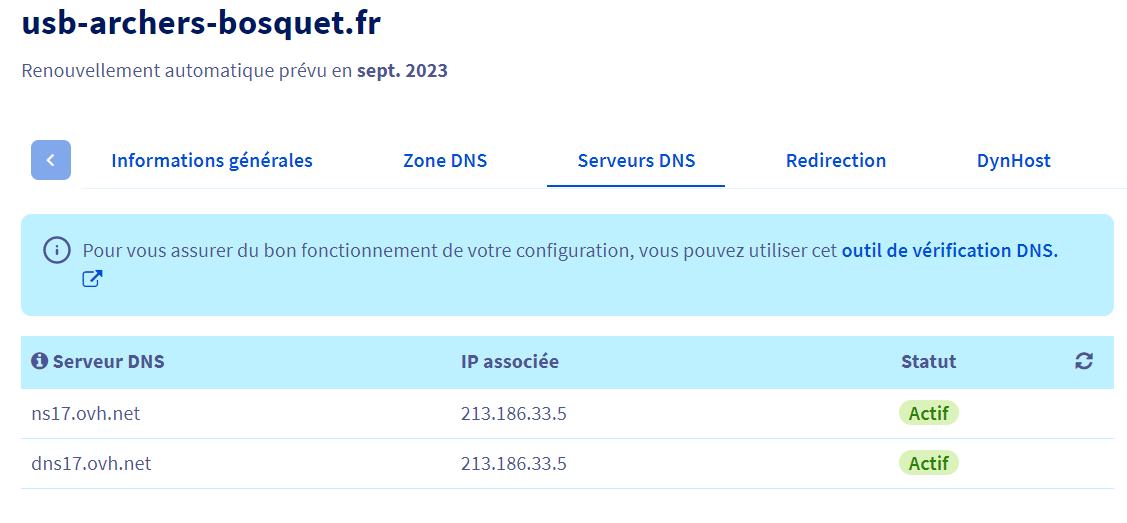 **Manager OVH > Web Cloud > Domaine > VotreDomaine > Serveurs DNS**
