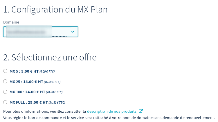 Pour les détails sur l'achat des "MX5", merci, mais j'avoue que j'aurais aimé trouver les infos "officielles" sur le site d'OVH, car il propose d'acheter pour 6€ TTC, mais il n'y a aucun détail (clairement, on ne sait pas si on paye 1 fois/ par an / par mois...)