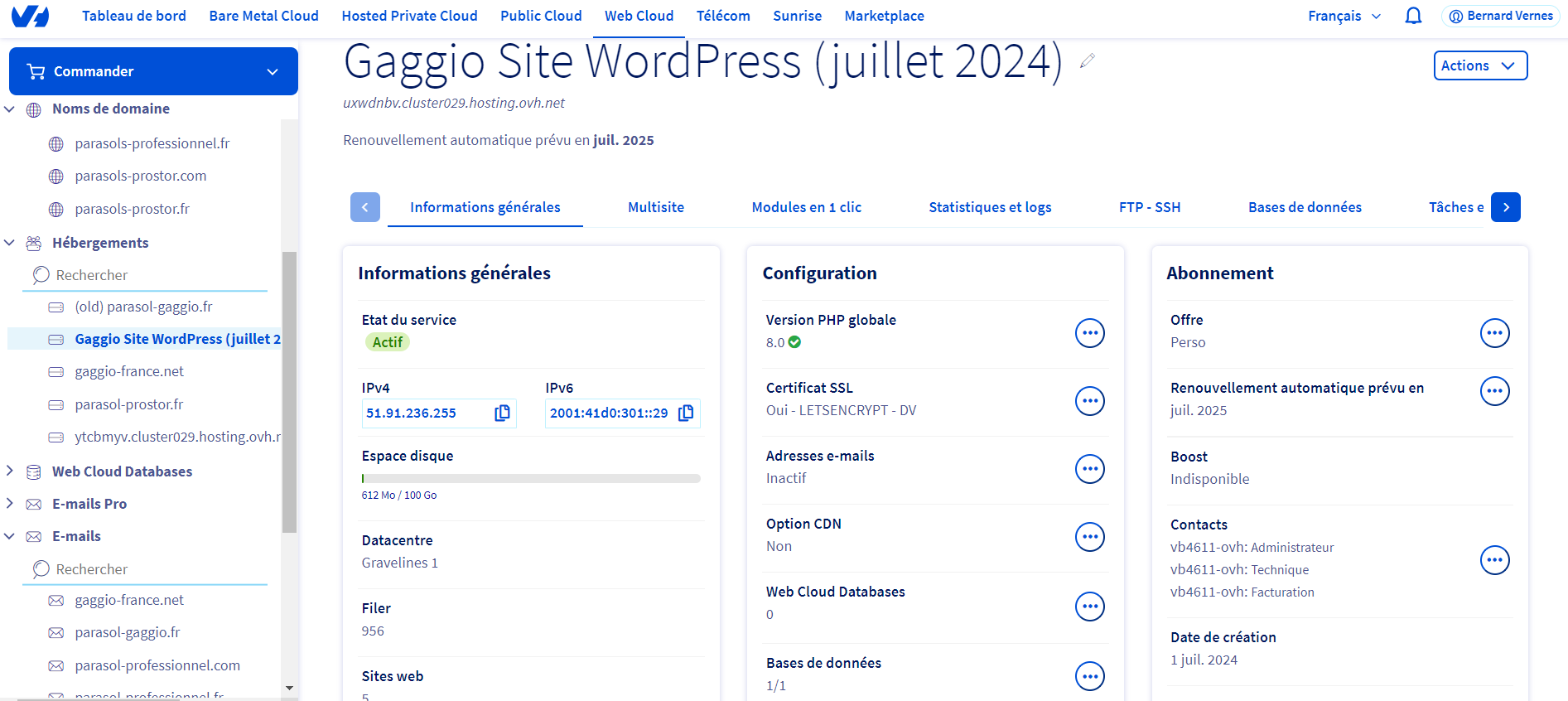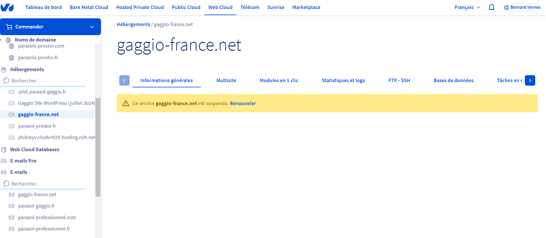 Mon erreur : je n'ai pas délié l'adresse mail (mail@gaggio-france.net), dont je me servais encore, et qui par conséquent n'est plus opérationnelle.
