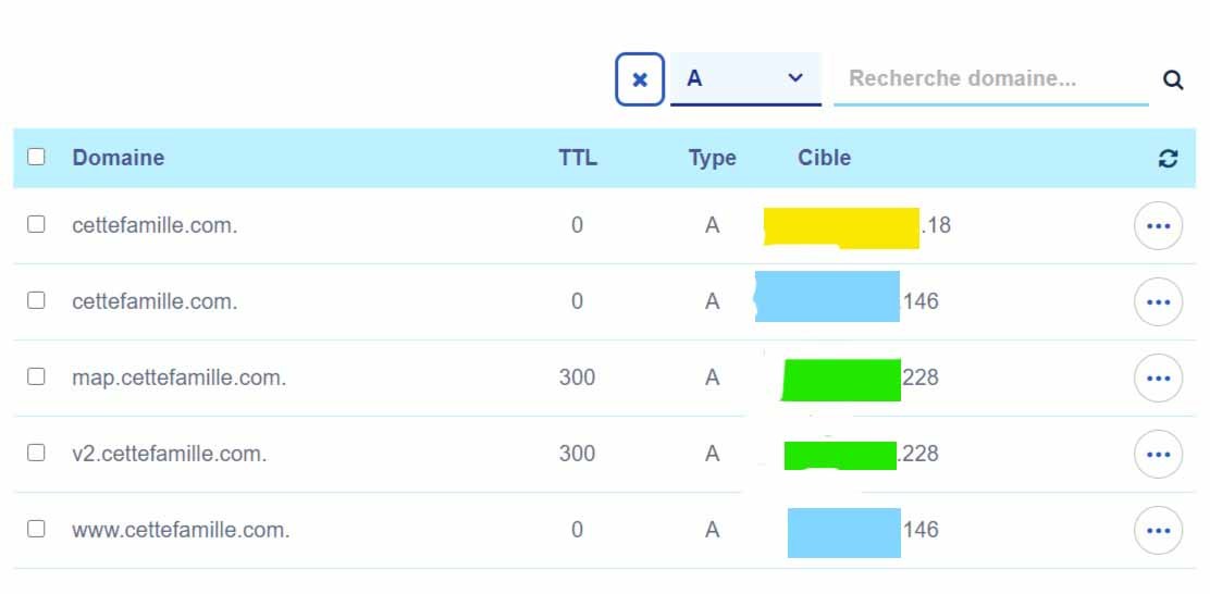 Si j'ai compris la procédure pour la création du CNAME, j'ai plus de mal avec la création d'un enregistrement A et cette info : "Si une ou plusieurs adresses IP sont actuellement répertoriées dans votre Enregistrement A, remplacez-les par l'adresse IP que nous fournissons."