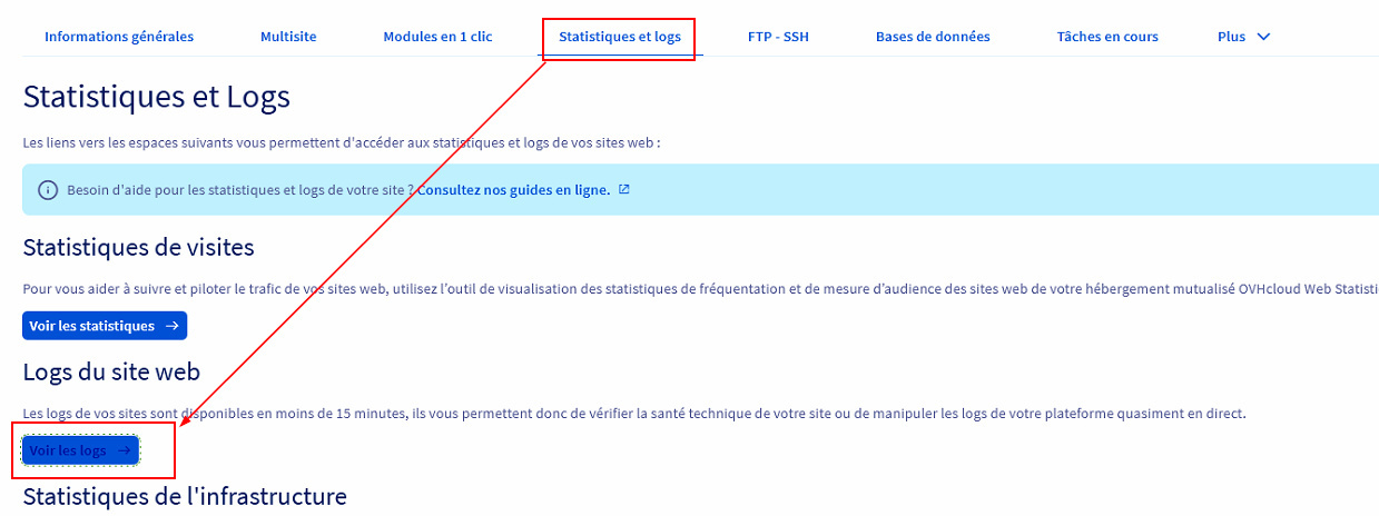 normalement il y a un lien qui permet de consultyer des logs "live" (5minutes de délais).