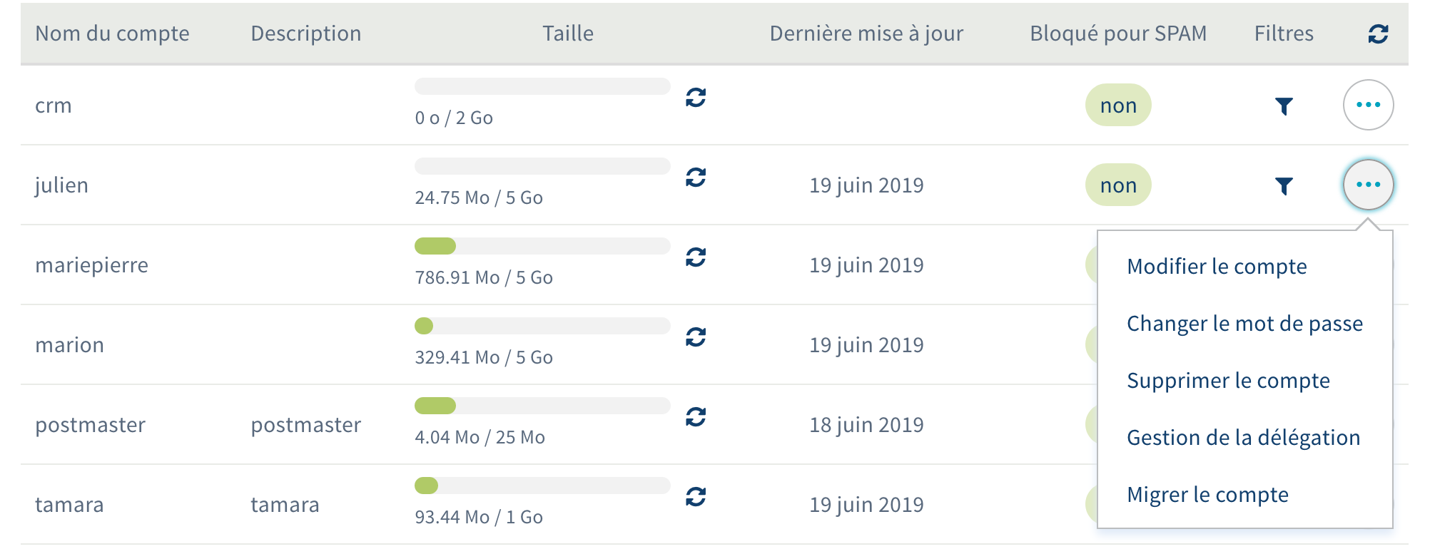 Depuis l'espace client, dans Web / Emails / le nom de domaine puis l'onglet emails :