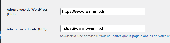 Il faut mettre dans Réglages > Général et dans les 2 champs l'adresse que tu souhaites utiliser.