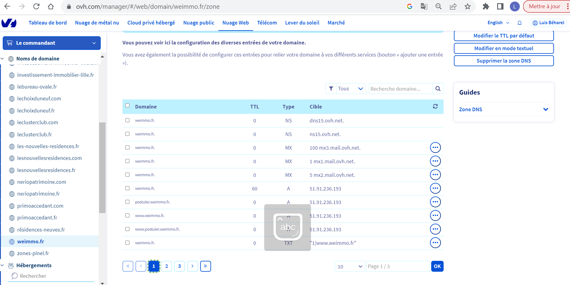 **Manager OVH > Web Cloud > Domaine > VotreDomaine > Zone DNS**