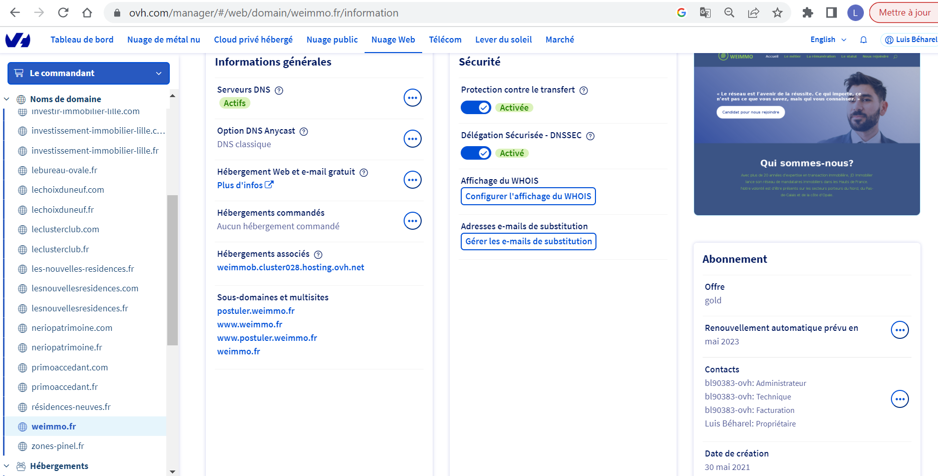 Mon nom de domaine est www.weimmo.fr avec un sous-domaine postuler.weimmo.fr