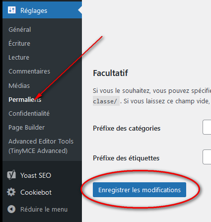 Et ensuite **surtout ne pas oublier d'enregistrer les permaliens** pour que tous les liens se mettent à jour.