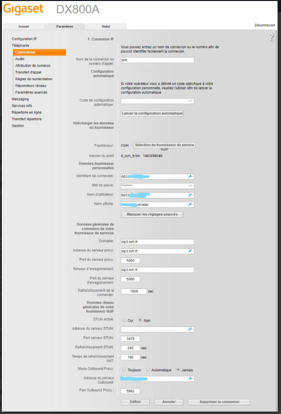 Forfaits VoIP - Configuration voip sur dx800a gigaset