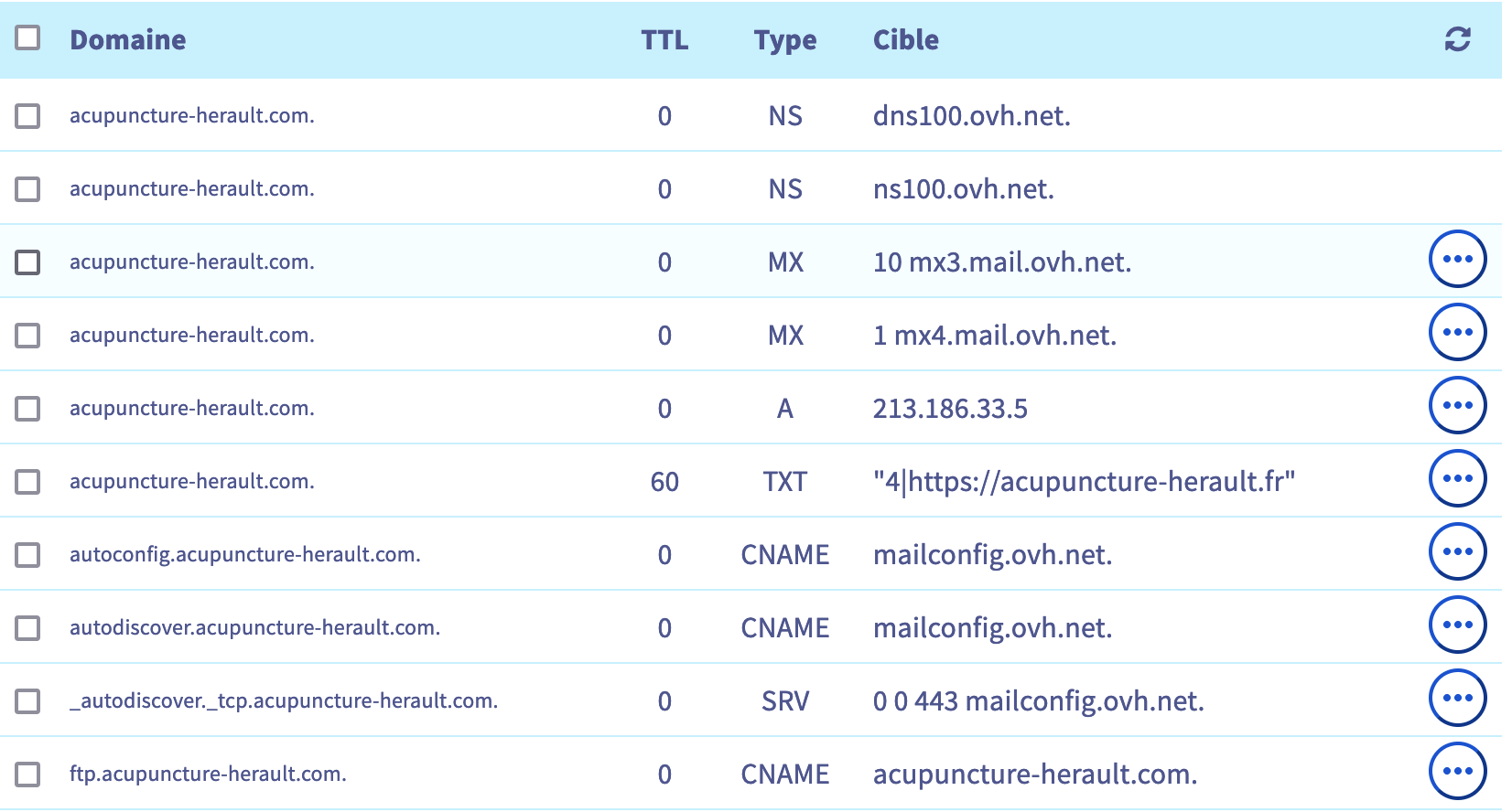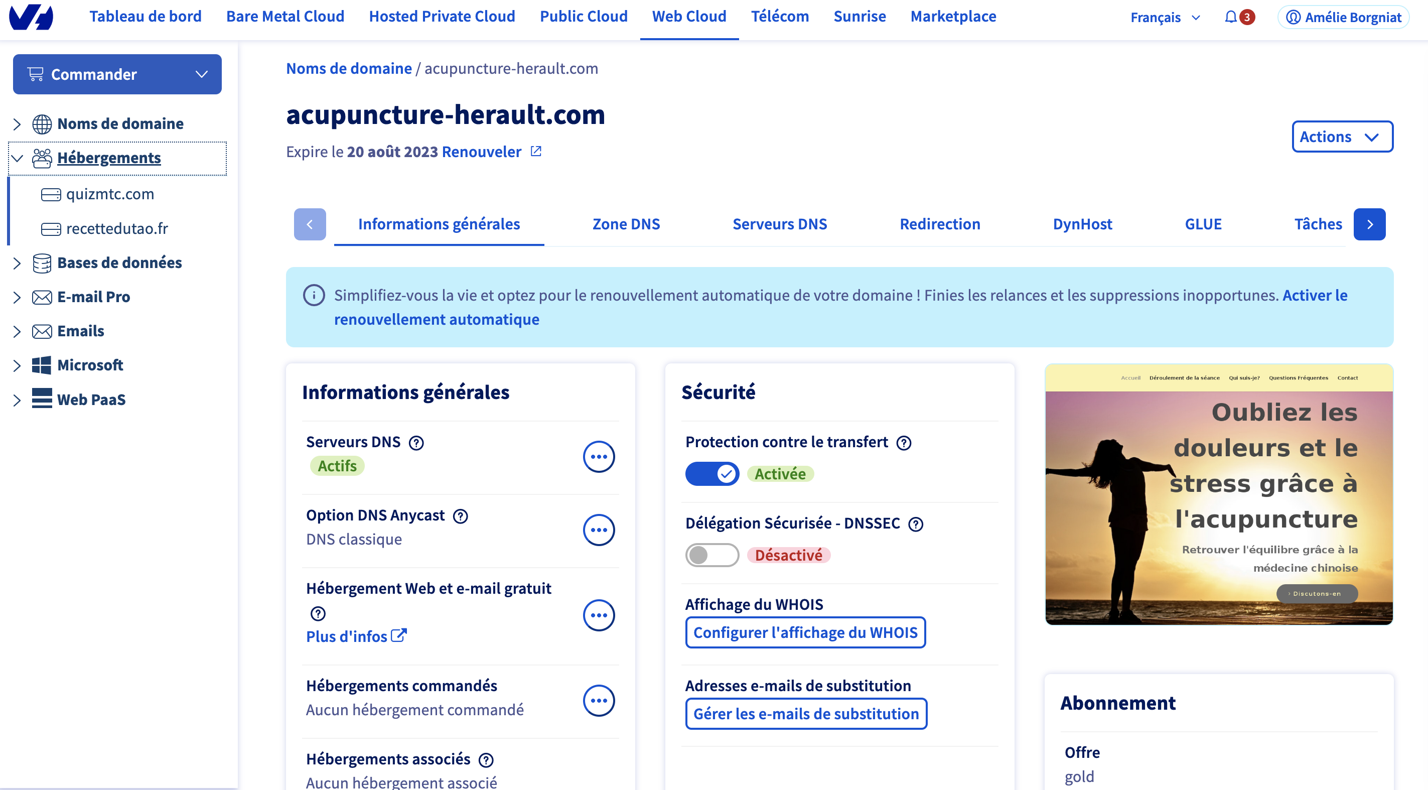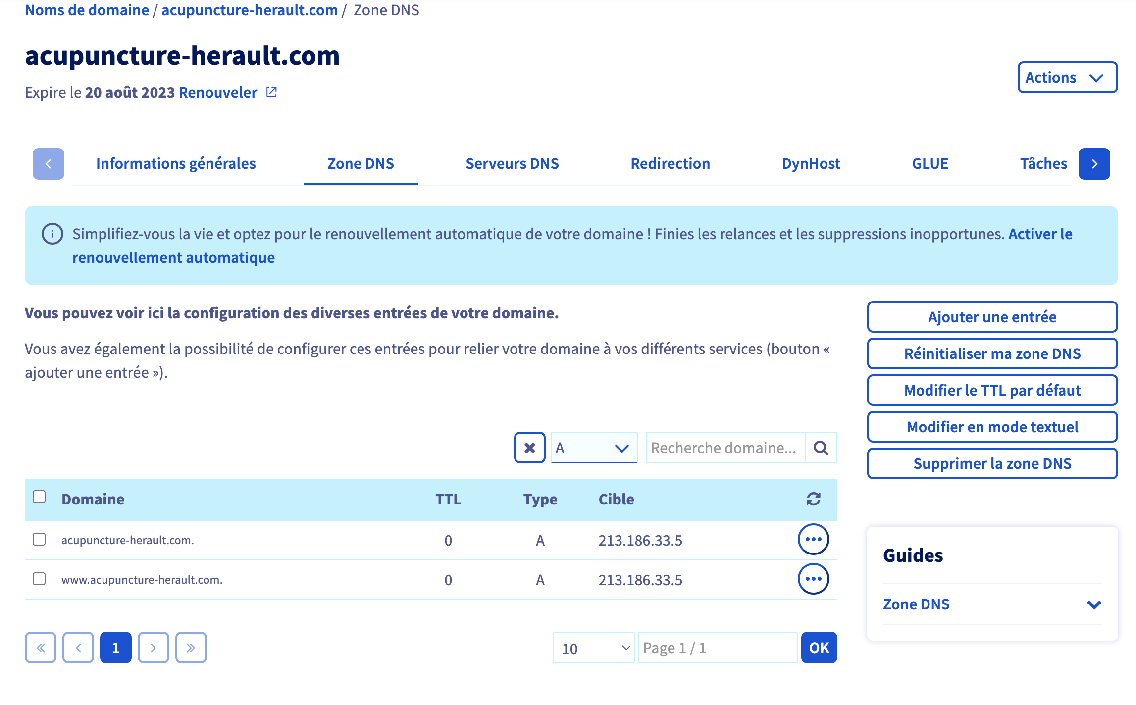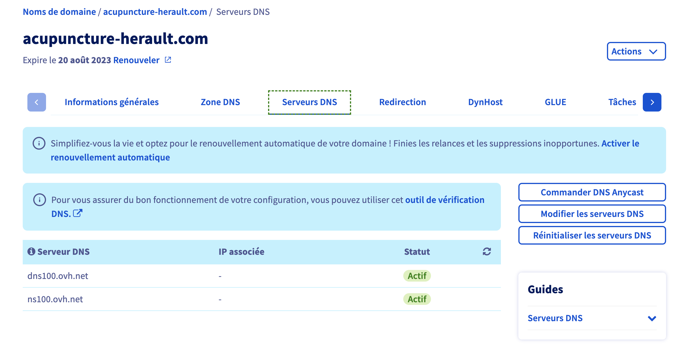 Le nom de domaine chez ovh: www.acupuncture-herault.com.