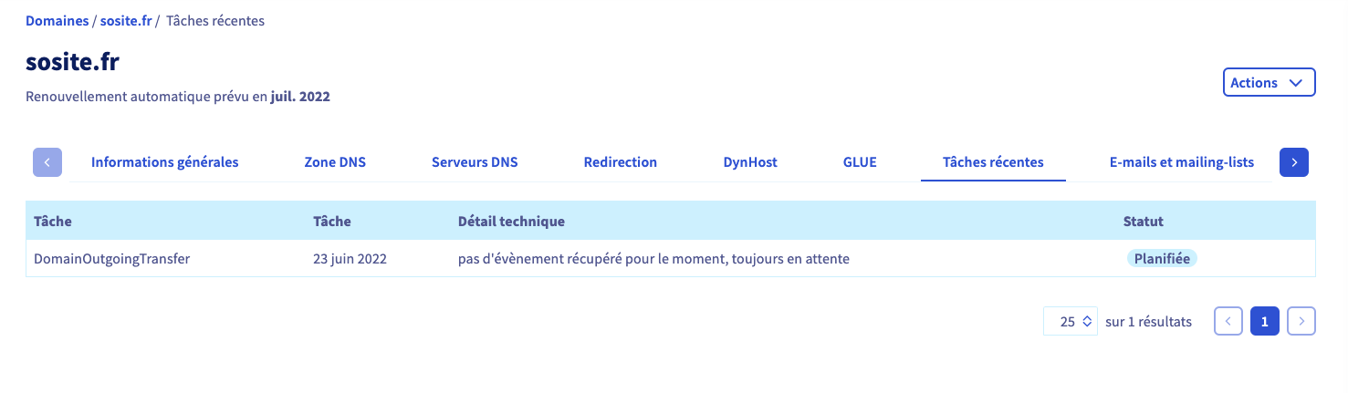 donc je n'ai plus rien a faire, il faut juste attendre. Sur le statut du domaine chez ovh il y a indiqué "pas d'évènement récupéré pour le moment, toujours en attente" et le statut indique planifié
