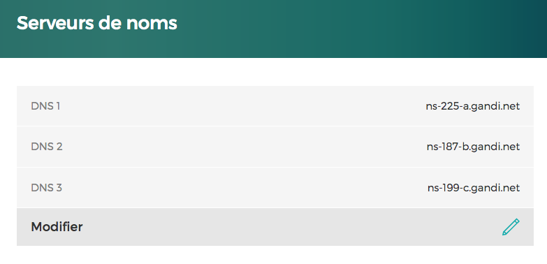 pour le moment, les DNS renseignés chez Gandi sont les suivants :