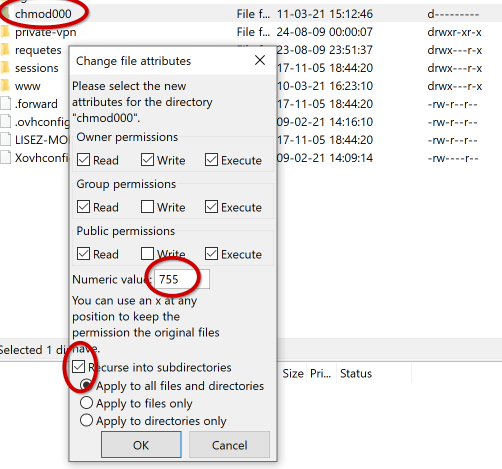 heu là comme ça, normalement l'owner des fichiers peut tjrs changer le mode, pas possible en FTP de changer ?