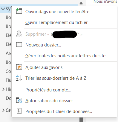 Dossier présent dans le webmail, mais absent sur Outlook