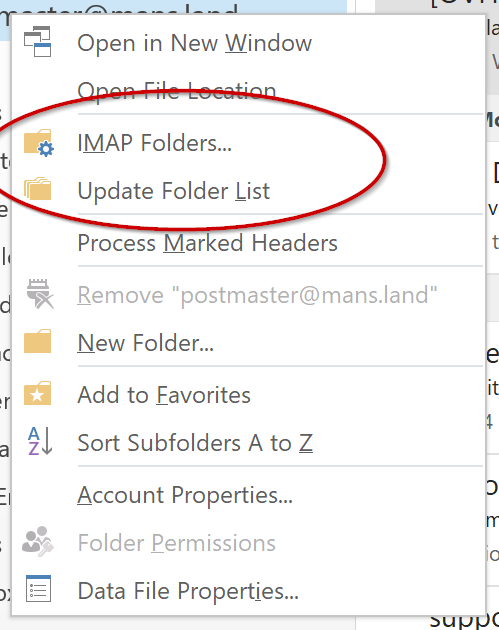 Via les propriétés de votre boîte IMAP, connectez-vous dessus: