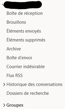 Dans Outlook vous avez le nom de la boîte (l'adresse mail que vous avez masquée en noir) dans la partie gauche de l'écran.
