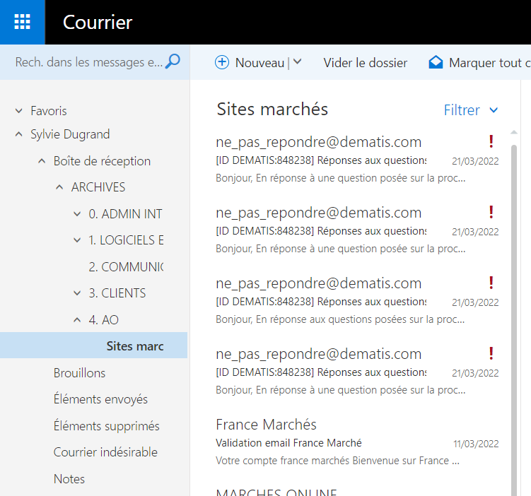 Microsoft m'a configuré l'adresse mail pour l'insérer dans Outlook. Ayant déjà une adresse mail via GMAIL (dans laquelle j'avais un dossier créé "Archives" où je stocke tous mes mails), j'ai tout simplement déplacé mon dossier dans ma nouvelle adresse email pro.