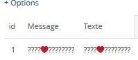 Sur ces 2 smileys copiés sur la page et insérés directement (phpmyadmin) sur la table de test , 😊 ressort en ???? et ❤️ est correctement enregistré. Le problème n'affecte que certains caractères spéciaux. Ces 2 caractères s'enregistrent normalement sur les autres BDD dont je dispose, hors OVH.
