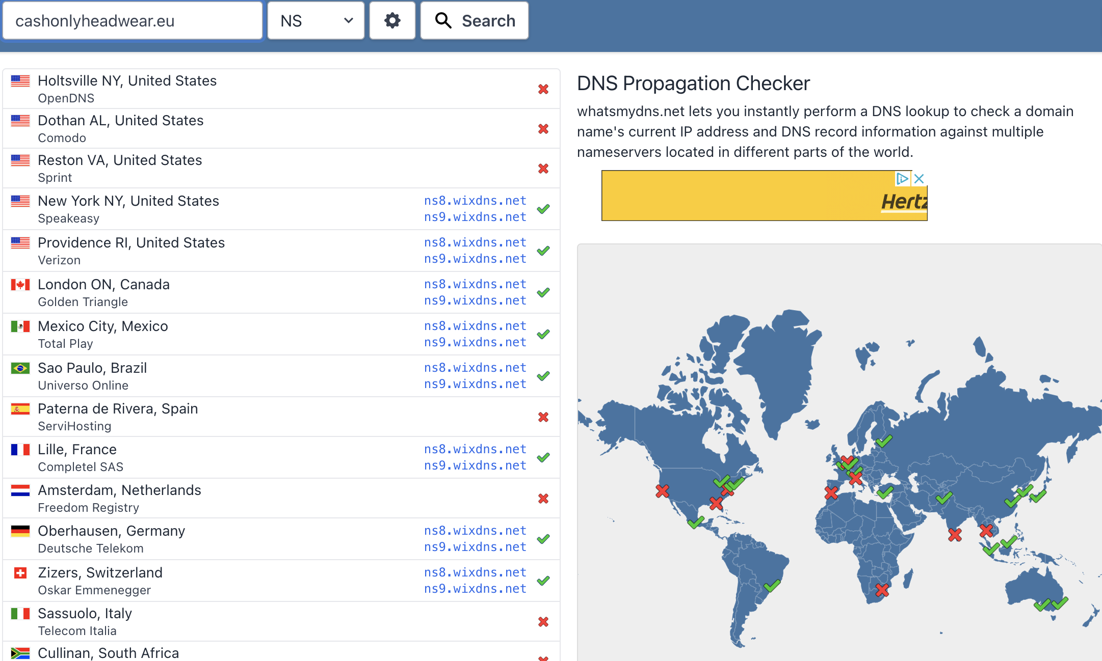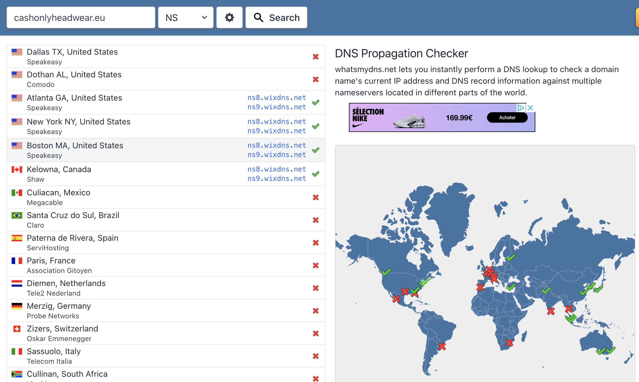 Je viens de faire un Whatsmydns.net et il semblerait que la propagation soit partiellement effectuée, mais pas dans les pays qui m'intéressent à savoir l'Europe: