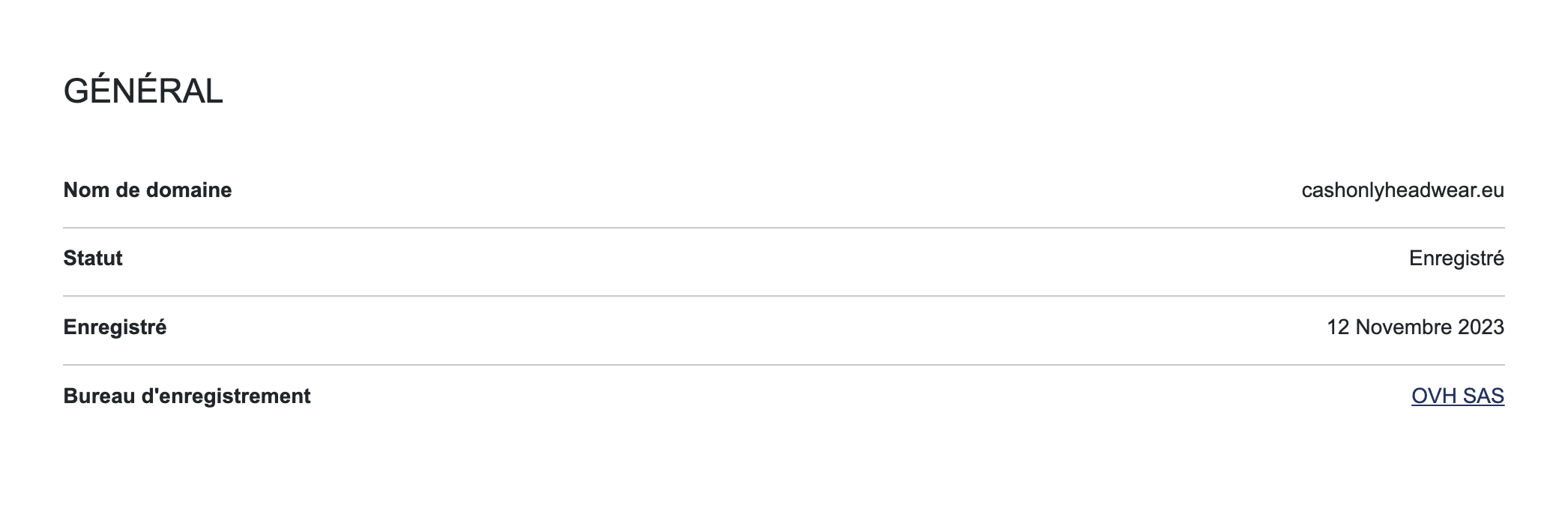Page : https://whois.eurid.eu/fr/search/?domain=cashonlyheadwear.eu