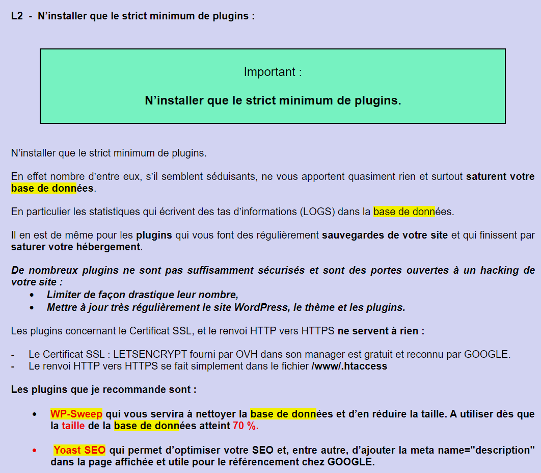 **L2 - N’installer que le strict minimum de plugins**