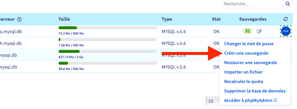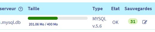 4 - Suivant une des propositions générales d'OVH pour augmenter l'espace disponible pour la BD, **j'ai commandé une base de donnée** de plus grande capacité. (la suite m'a montré à mes dépends que ce n'est pas la meilleure solution)