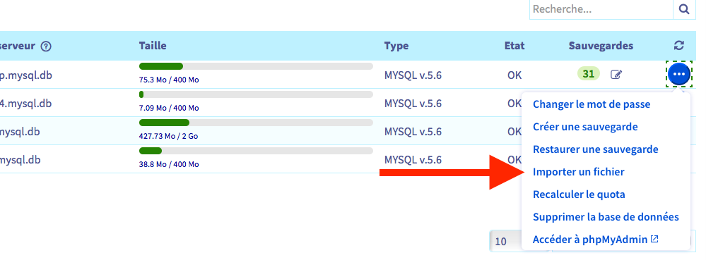 4. Importer un fichier (la sauvegarde) dans la nouvelle Bdd 2 Go