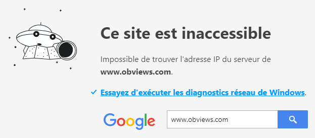 obviews.com (état ok) IPv4 91.134.128.42 (état de l'entrée ko) et IPv6 2001:41d0:202:100:91:134:128:42 (état de l'entrée ko)