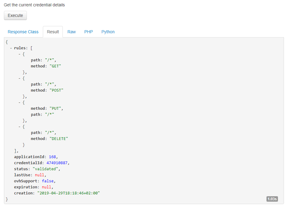 Alors j'ai directement commencé par exécuter l'API "currentCredential" parce que oui j'avais bien remplis le formulaire correctement.