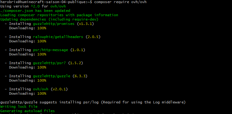 J'ai donc directement rentrer la commande que tu m'as conseillé "composer require ovh/ovh", ce qui m'a donné :