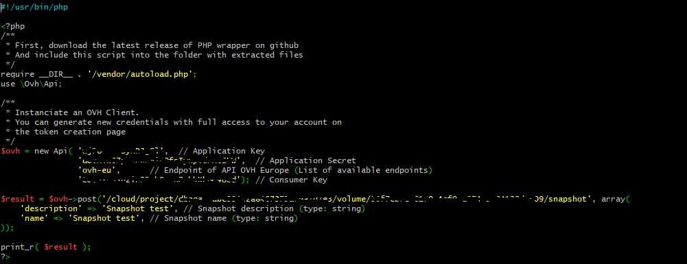 > $ovh = new Api( '', // Application Key