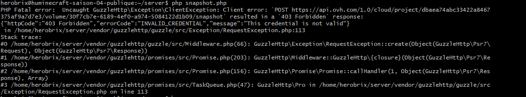 Avant de l’exécuter en cron, je tente de l’exécuter manuellement depuis cette commande : php snapshot.php.