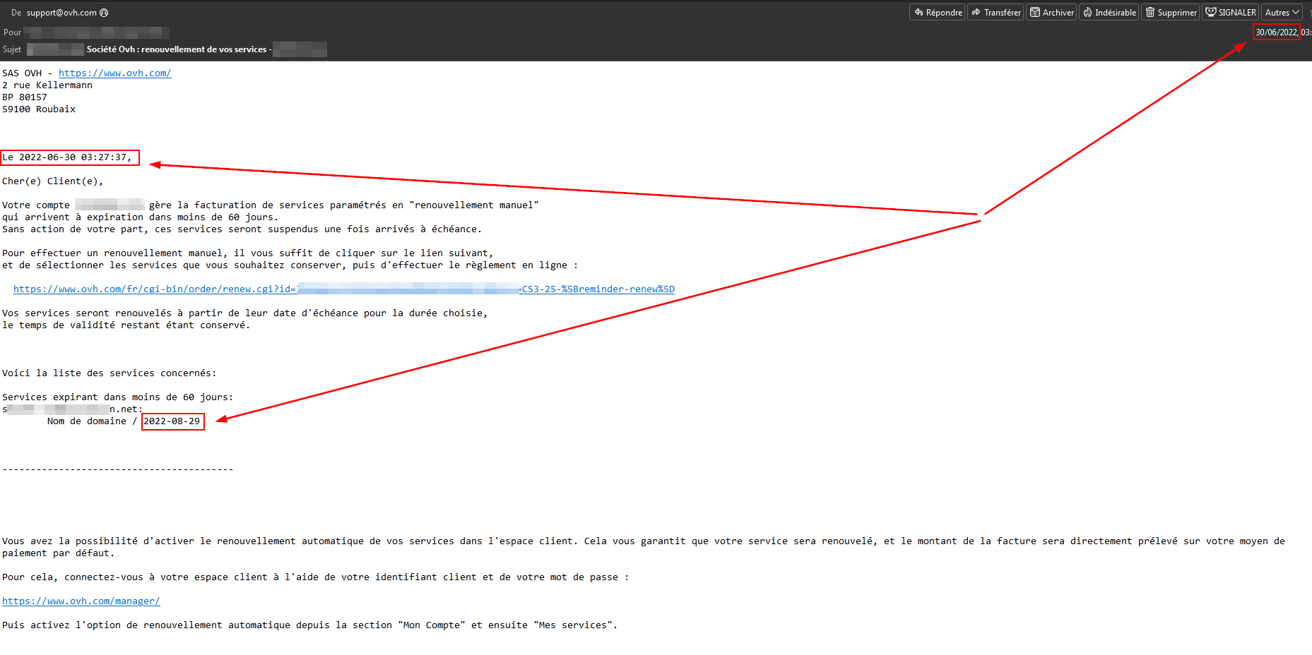 il faut s'assurer que vos coordonnées de contact sont toujours à jour dans votre profil OVH.