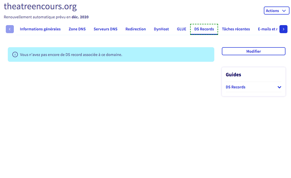 par contre tu dois modifier la zone DNS chez eux