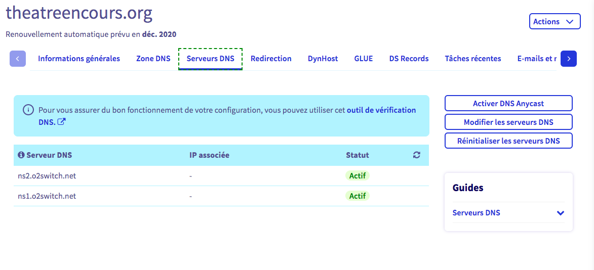 Ultime question : Concernant les changements DNS chez o2switch, que dois-je dire à mon frère de changer ?