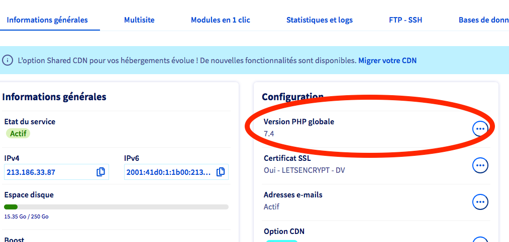 alors @THERYO regardes dans le manager OVH quelle version PHP est choisi (WP a besoin de 5.6 minimum)