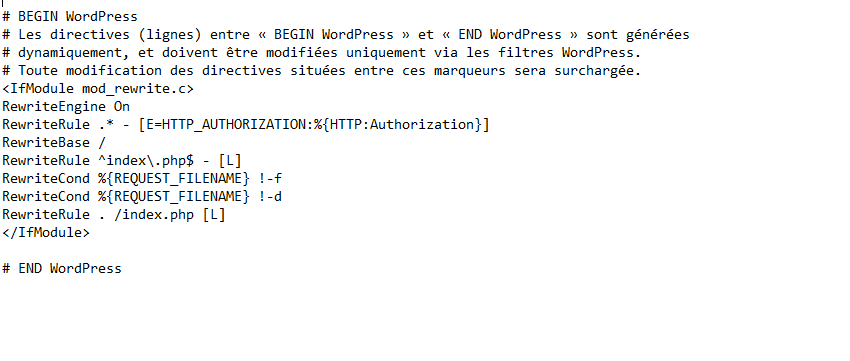 Voici la capture de mon fichier htaccess :