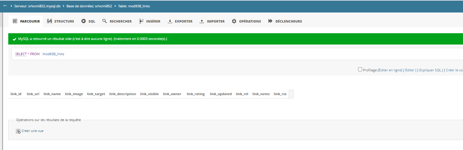 Je vois que dans ma base de données, le champ "links" est vide...je ne pense pas que ce soit normal ? comment retrouver mes liens ?