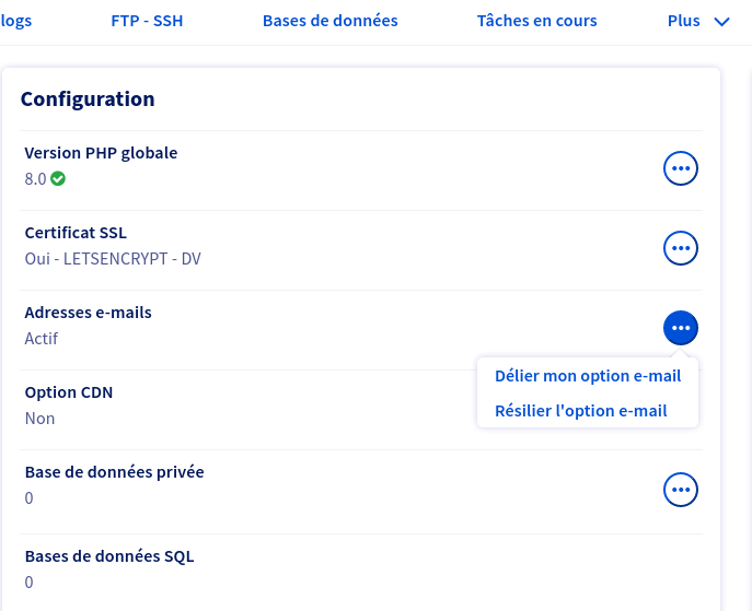 As tu une option pour délier le mail de l'hébergement ? Je pense qu'il faut le faire.