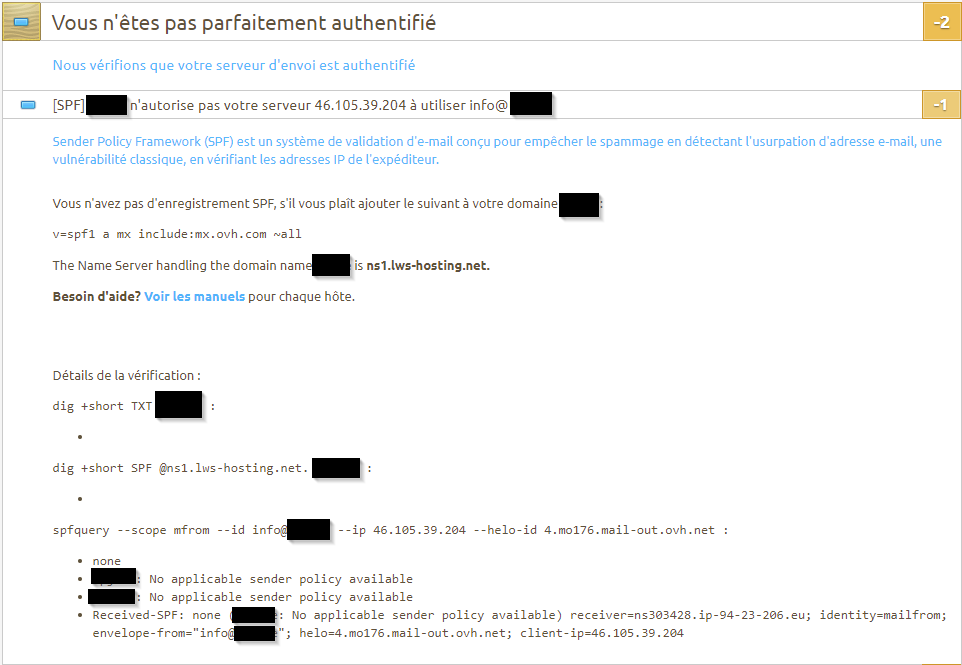 J'essaie de configurer correctement le champ SPF pour un domaine chez LWS et une adresse hosted Exchange OVH.