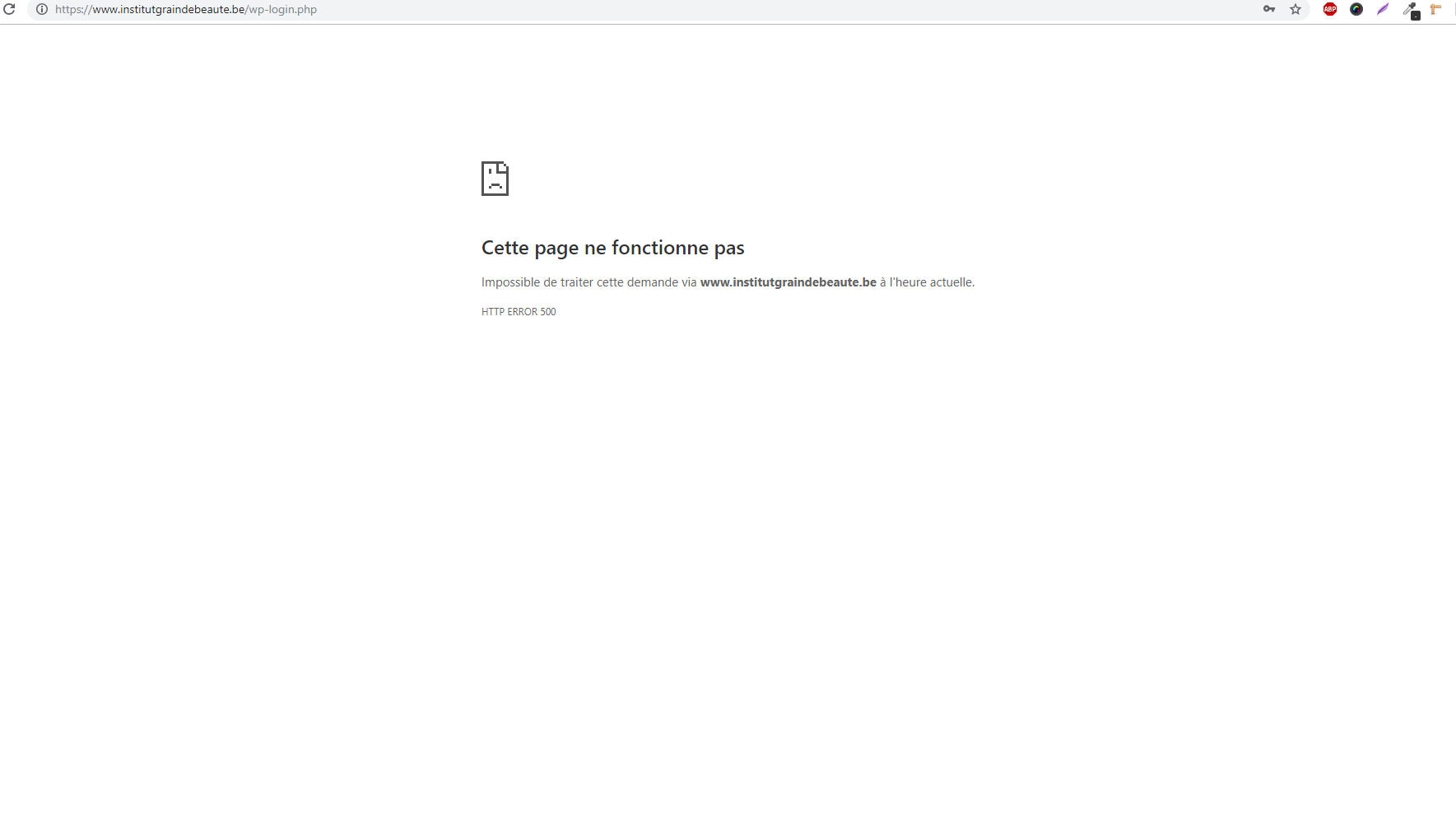 Cette page ne fonctionne pas Impossible de traiter cette demande via www.nomdemonsite.be à l'heure actuelle.