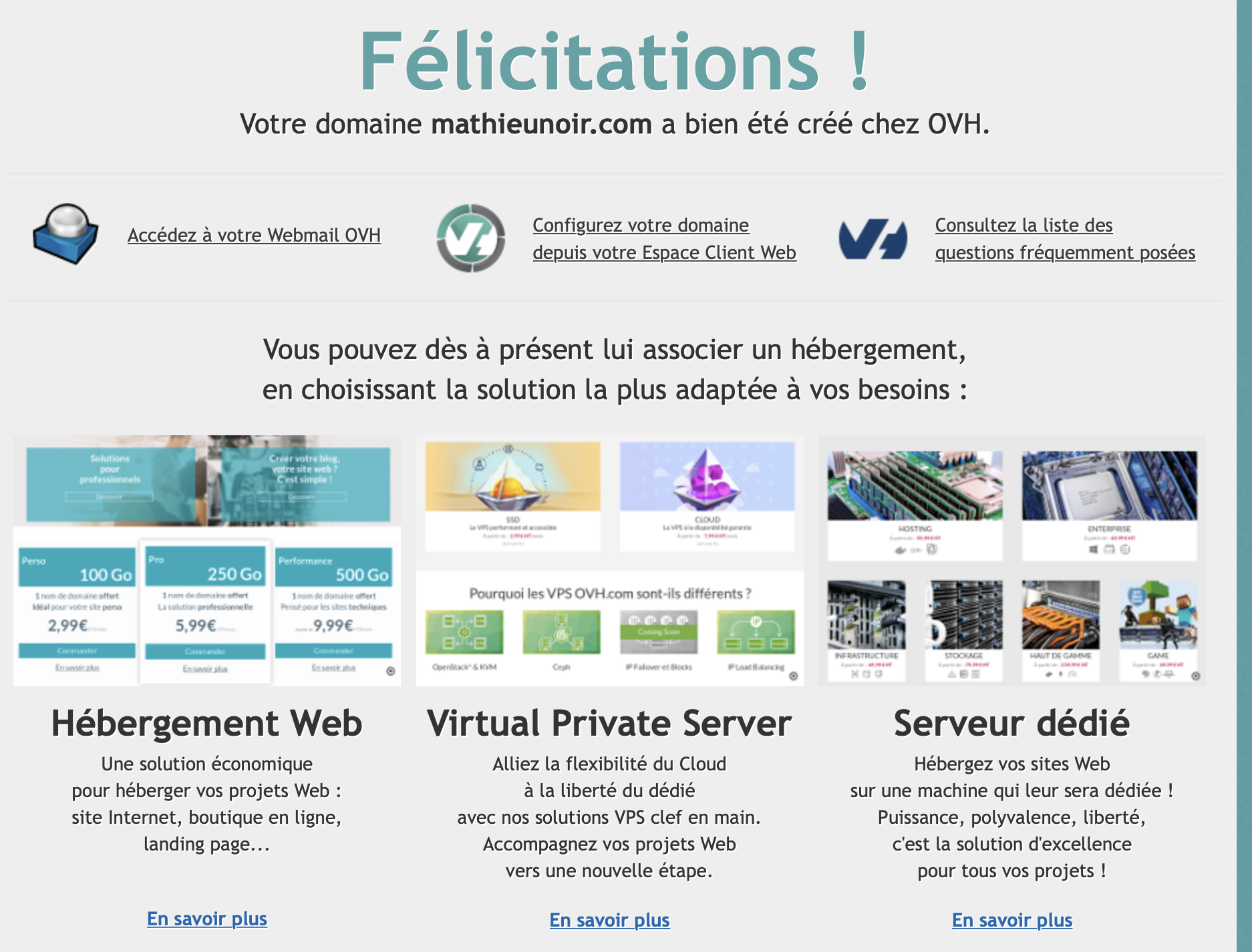 Mon nom de domaine est mathieunoir.com, mais je suis redirigé sur https://www.ovh.com/fr/mail/