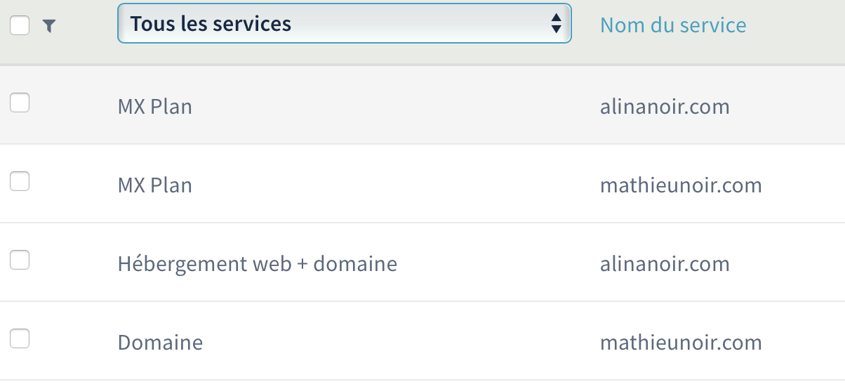Par contre, quand je sélectionne "mon hébergement OVH" je ne vois quemon autre nom de domaine (Alina Noir) alors que le mien s'appelle "Mathieu Noir".