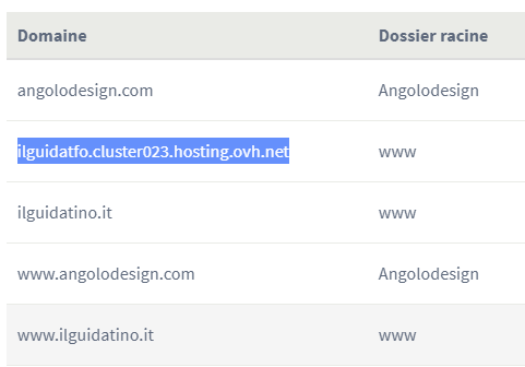 En ce qui concerne l'onglet multisite je vois que mes sites se retrouvent une fois avec www. et une fois sans (voir image jointe) plus un autre (ilguidatfo.cluster023.hosting.ovh.net) avec "cluster"