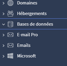 > menu a gauche l'onglet " Bases de Données " est vide