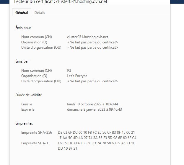 là malheureusement reste que le support, car clairement y a un problème si tout est passé côté interface OVH, mais rien n'a été généré côté LE, en tout cas pas ce soir