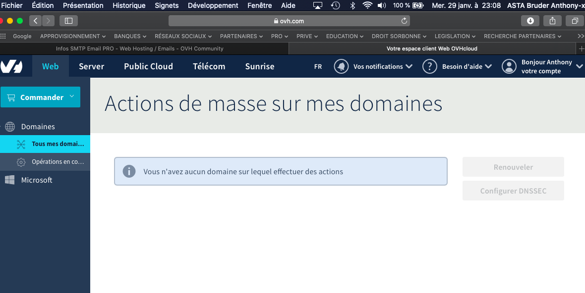 D'après la photo de mon compte je n'ai pas de domaine; j'ignore où cliquer