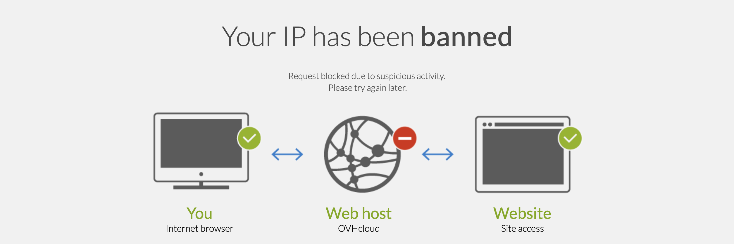 Depuis quelques temps je constate un problème avec un des sites wordpress hébergé chez OVH que je gère. Lorsque je suis chez moi, connecté à mon wifi perso, j'ai régulièrement un message d'OVH m'informant que mon IP a été bloquée ("Your IP has been banned").