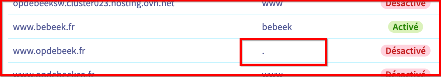 Je suis comme saint Thomas, je veux voir une copie de ton écran Espace Client > hébergement > multisite, et constater par moi même ce qu'il y a dans la colonne 'Dossier Racine'.