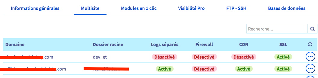 Et idéalement faire une capture d'écran de "multisite" du manager