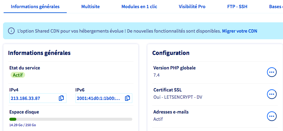 Dans le manager OVH demander les certificats SSL let'sEncrypt