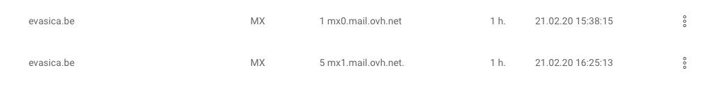 evasica.be. 3600 IN MX 1 mx0.mail.ovh.net.